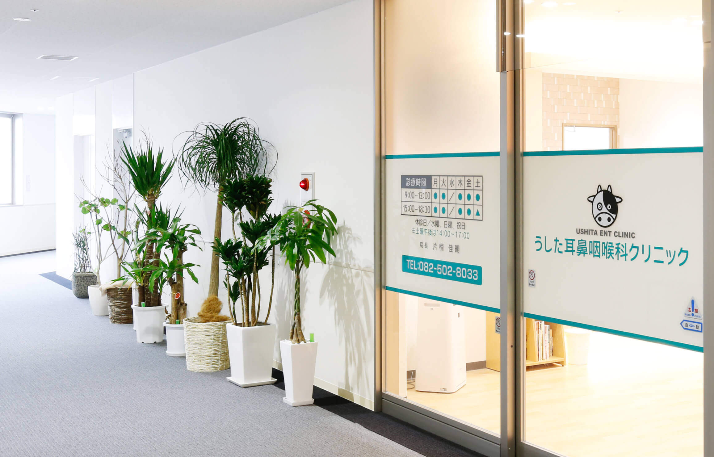 アストラムライン「牛田駅」から徒歩5分、東区牛田本町のうしたみらいビルの医療モール内にうした耳鼻咽喉科クリニックはあります。ビル内には駐車場もあるのでお車でのご来院も可能です。