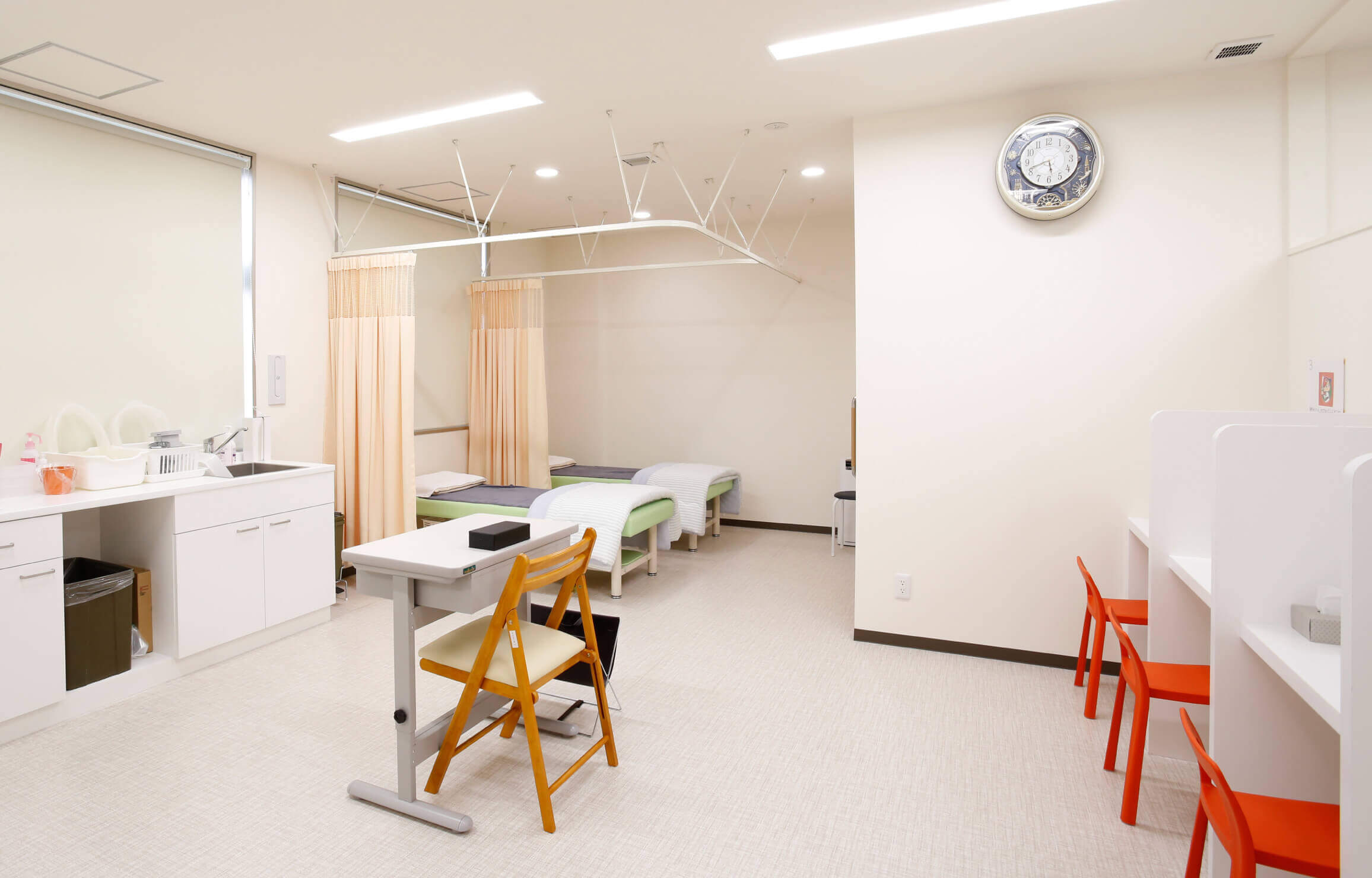 クリニック内はバリアフリーで、車イスやベビーカーの方もそのままご来院いただけます。お子さま連れの方は、待合室のキッズスペース、トイレのおむつ交換台もご利用ください。